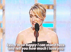 奥斯卡颁奖礼时,凯特坐在台下看着小李子得奖,比他还要激动,眼里泛着泪光的画面,让无数人感动。