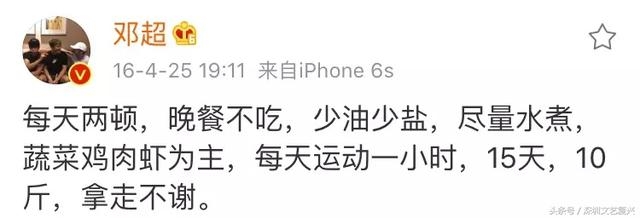 邓超去年曾经分享过自己的减肥方法——