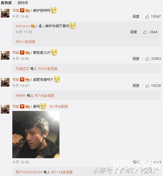 邓超还在留言区发了一张自拍照,以证明自己确实瘦成了锥子脸: