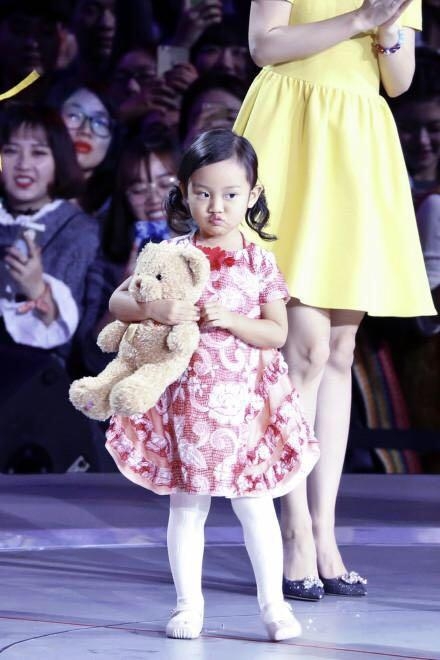 其实这已经不是铛铛第一次走秀了,在16年的时候铛铛就穿着仙女裙走过秀,不过当时的她还没有修炼出如今的气场,旁边有另外一位模特姐姐一直牵着她走,看起来十分乖巧~