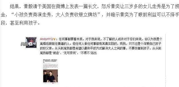 妹妹还记得穿白色仙女裙的首秀还被铛铛的爸爸黄毅清看到,随后在微博上发表了长文表达了对黄奕的不满,这小孩子去走个秀而已,有必要这么激动么?各种暗指黄奕让女儿负责商演走秀,而黄奕在背后坐收渔翁之利。