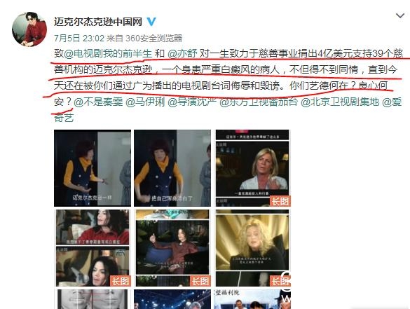 身处娱乐圈的明星们,享受着作为明星带给他们的财富,也必须承受公众挑剔的意见。最近正热映的《我的前半生》第三集28分处,马伊琍有一段台词:像迈克尔杰克逊一样,把自己浑身漂白了。"