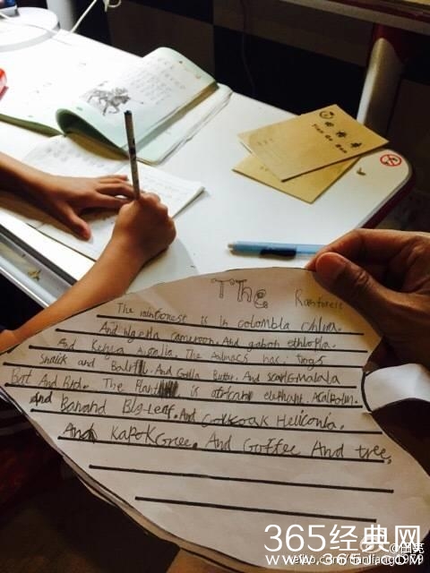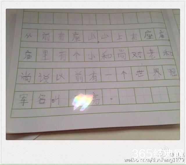 英语作业够高深了,语文作业老爸能看得懂,小姑娘不忘讨好一下老爸,山里有个庙,庙里有个和尚,和尚说一个世界冠军的故事。