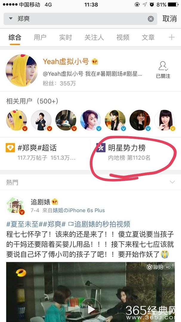 20多分钟从1120名到365名,然后刚去看了下,已经29名了,按照这个趋势,今天进前五不成问题呀。本人也跟很欣赏郑爽本人,希望爽妹子越来越好
