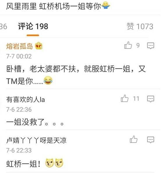 网友纷纷评论道:“虹桥一姐,风里雨里我在虹桥机场守你”“哈哈虹桥一姐风雨无阻”