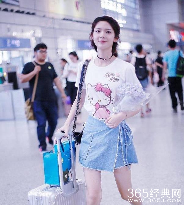 7月6日,陈瑶现身上海高铁站,卡通T配牛仔裙少女感十足,获粉丝簇拥玩自拍,与“虹桥一姐”意外撞衫玩自拍。