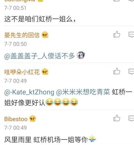 两人还卖萌呢,虹桥一姐,就服你。