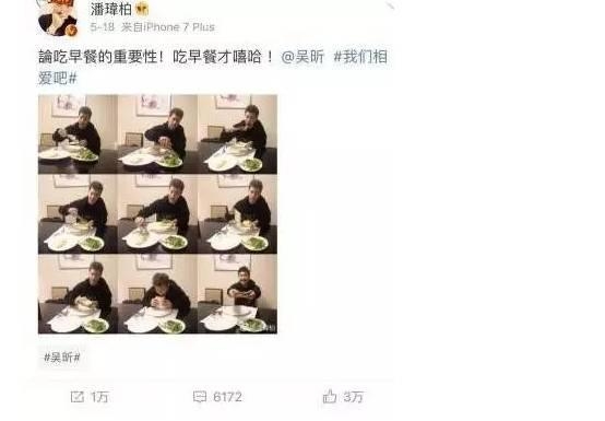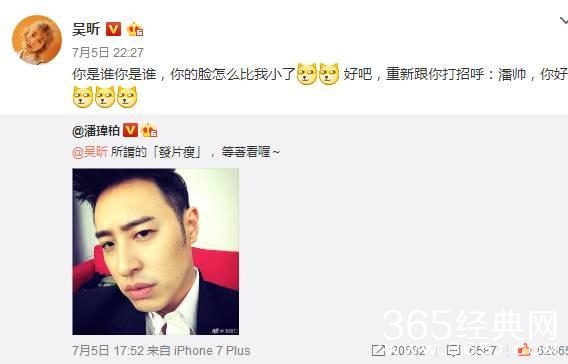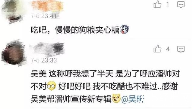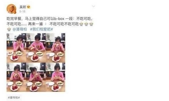 吴昕一直吐槽潘玮柏小胖,潘玮柏最近要发片,第一时间艾特吴昕发片瘦,等着看。