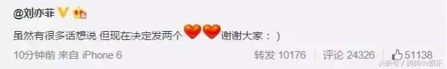 当时,刘亦菲只在微博发了一句话回应与宋承宪恋情:虽然很多话想说,但现在决定发两个心心,谢谢大家:)