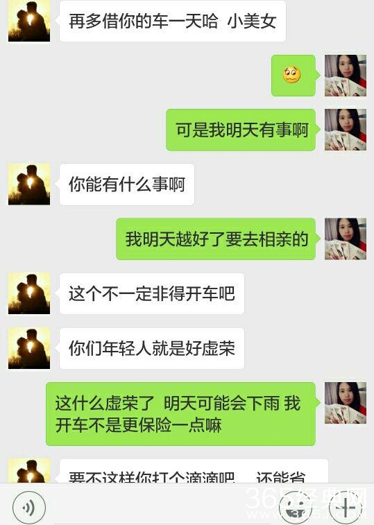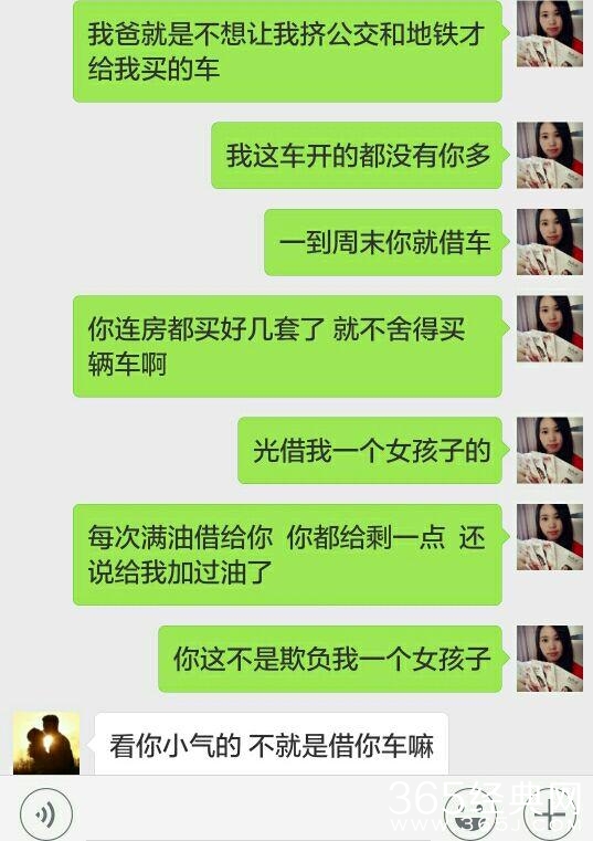 今天瘦子说一个关于借车的事,本次事件的女主有一辆车,是女主的爸爸不忍心让女主挤公交和地铁专门买给女主的,但是女主单位有一个人,专门喜欢在周末借女主的车,女主称他为王哥,就是本次事件的男主。本周六果不其然,男主又把女主的车给借走了,因为女主刚毕业工作,不太懂得拒绝,为了人情,也为了好人缘,所以就又把车借给他了,因为女主周日要去相亲,在周六晚上8点却也没有见男主把车还回来,找到男主一问却发现,男主把自己的车开到了乡下,而且周六也要在乡下过夜不回来了,女主说出明天要用车去相亲,男主却说女主虚荣,相亲不一定要开车去,女主说周日可能会下雨,开车比较稳妥一点,男主又建议女主打车去相亲,这个时候女主都快要委屈哭了。