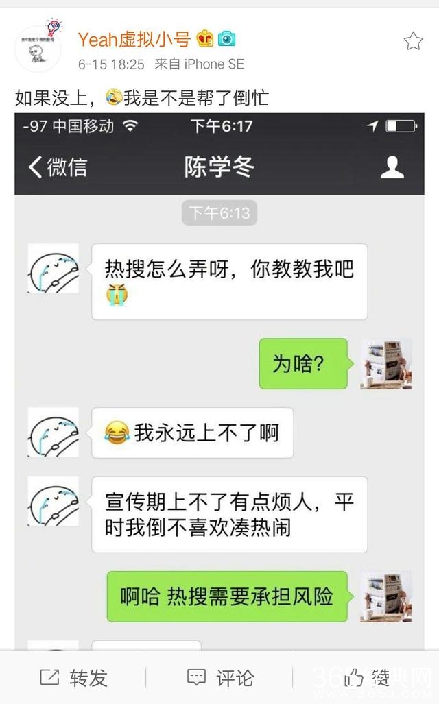 我们先说一个事,6月15日的时候,郑爽发了一张微信截图,说的是陈学冬跑去问自己,怎样才能上热搜。然后郑爽直接把对话截图发到了微博。