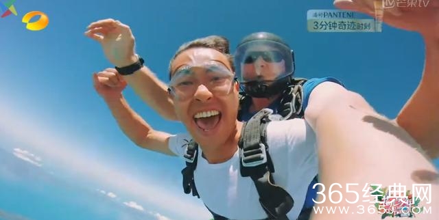 张若昀还有心思对着镜头做表情呢,看上次他蹦极连跳三次,就知道他根本不怕。