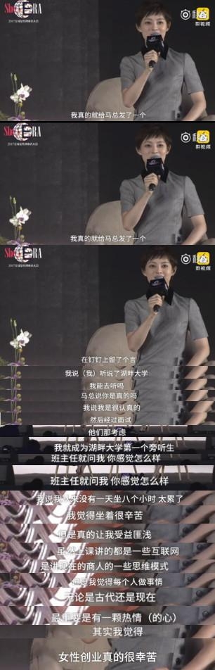 孙俪还讲到了自己的一些创业前的事情,孙俪还讲述自己如何到马云的大学去上课的趣事,孙俪通过给马云留言的方式,告诉马云,她想要上湖畔大学,一开始马云还疑惑孙俪是不是真的要去?以为孙俪的开玩笑,结果孙俪是认真的,通过面试,孙俪做了一名旁听生,还直言比当演员还辛苦,因为听课要坐在那里八个小时,但是听课也让孙俪受益匪浅。