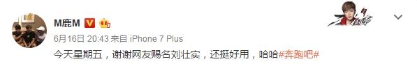 网传鹿晗本名刘壮实,他自黑感谢网友赐名↓