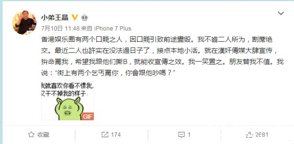 在隐忍了一天后,王晶也在微博上稍稍了进行了反击: