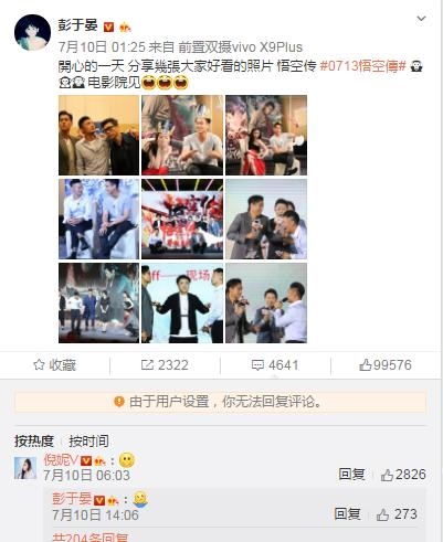 彭于晏发微博:開心的一天,分享幾張大家好看的照片。说是好看的照片,倪妮随后就评论这条微博,两人关系看着确实不错。