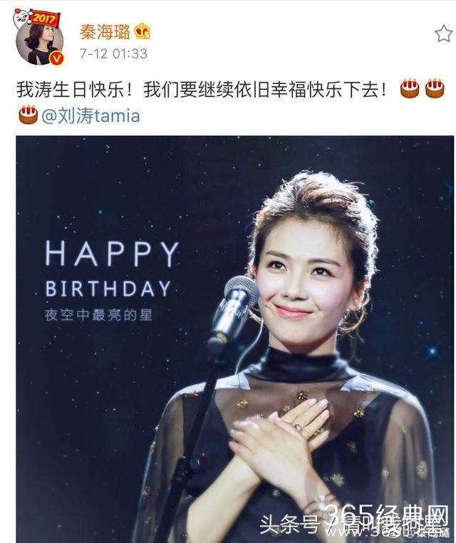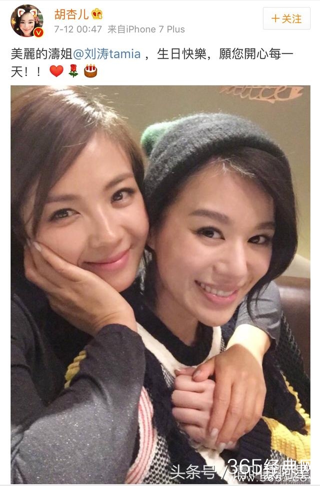 随后,胡杏儿也在凌晨送上祝福:美麗的濤姐@刘涛tamia ,生日快樂,願您開心每一天!!