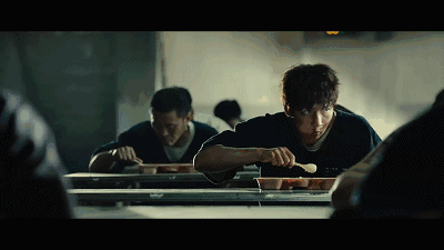 含冤入狱,遭遇人生中的各种不幸,当吃到以前从未谋面的机友胡须佬做的饭时,吃着吃着就落泪,而这个镜头虽然不短,但期间没有一句对白,连配乐也是极简的几声钢琴声,却催人泪下。