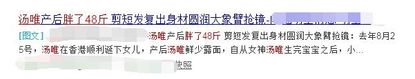不仅如此,汤唯在产后曾被记者拍到暴瘦照片。