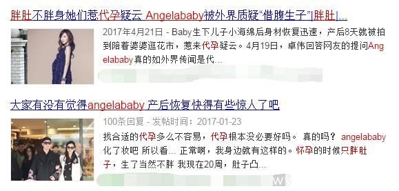 此外,流量女王angelababy,在怀孕时就因为毫无变化的纤细身材传出“代孕”谣言。产后快速回归的她,更是因为一组暴瘦照片成为热门话题。