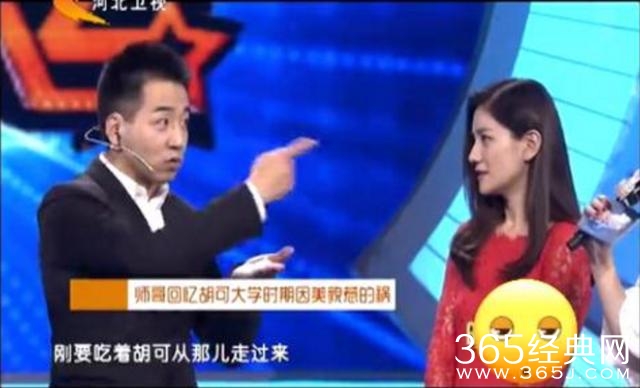 胡可,学生时期可以排第一的美女,有个节目中胡可师哥说到她年轻时候可是很漂亮的。胡可走进中传时第一次去食堂打饭,一男生看到胡可眼睛都离不开了,结果被班上的男生伸脚绊了一下,摔了个狗吃屎。