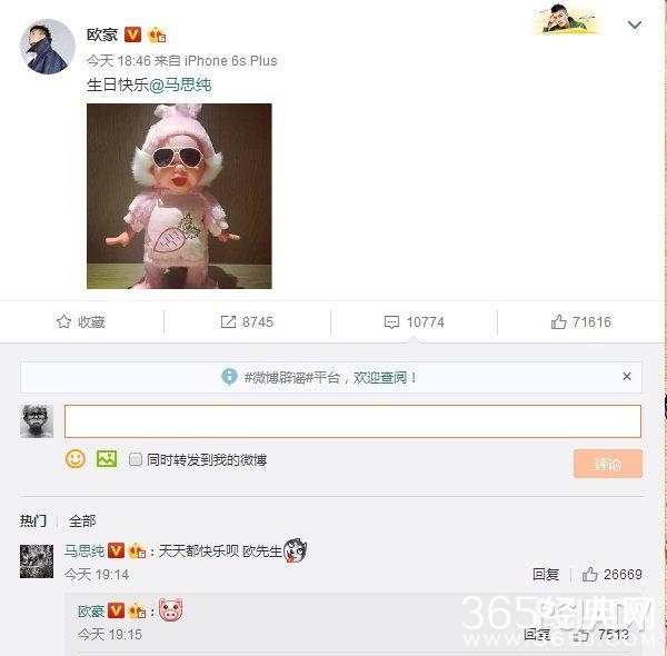 后来在马思纯生日的时候,欧豪不仅送上了祝福,还直接艾特了马思纯,坐实了恋情