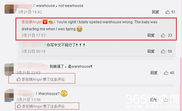 之前因为她拼错了一个仓库的单词,导致网友们集体讨伐,有网友让她不要装逼,直接发中文不就好了