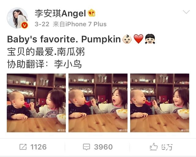 不过,咕咕在翻看ins的时候,无意间发现李安琪在自己的海外社交软件上吐槽了一把自家儿子吃相感人的观点