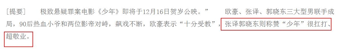 确实,对欧豪来说,这么多年在电影界的磨练不是说说而已,与这么多知名演员的合作也不是白熏陶的。