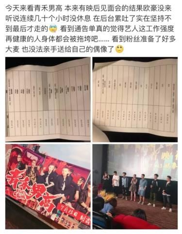 看看这张首映发布会当天的通告表,一整天不停的通告安排,难怪最后欧豪都累倒过去,真是惨兮兮。