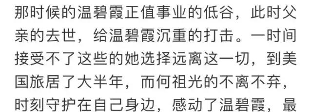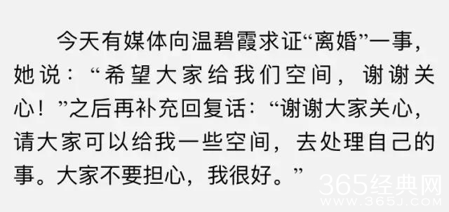 如今再翻温碧霞的微博,秀恩爱的内容不多见了,只更新寥寥几条工作状态。偶尔发发心灵鸡汤,字里行间透露着孤独和伤感。