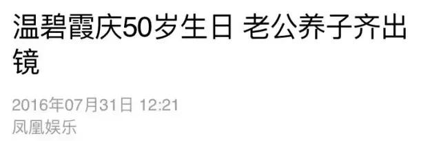 老公疼着,儿子粘着。年过半百的温碧霞在这种幸福的宠爱下活成了一个少女,保持着“冻龄”状态。
