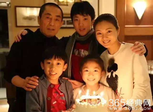 看全家福,看得出张艺谋确实年纪大了,但是一家人很是幸福。