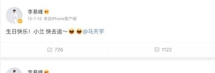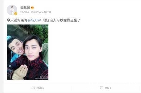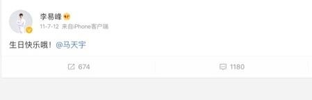 在李易峰是个小透明的时候,马天宇每年过生日都会在微博祝福一下。