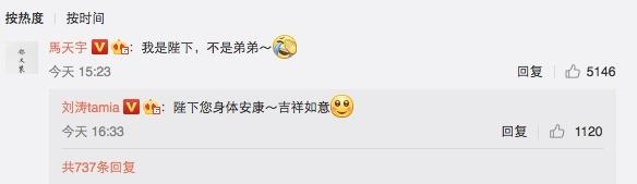 而马天宇在刘涛微博下回复了。