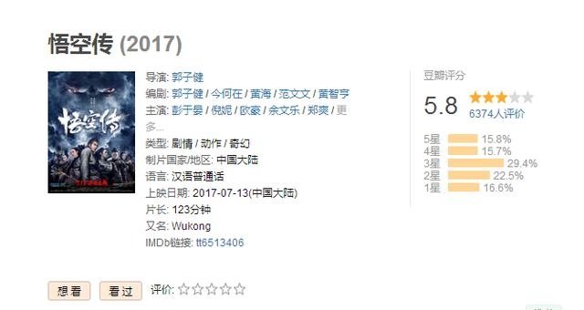 当小编今天打开豆瓣看《悟空传》的时候,却看到评分只有可怜的5.8分...