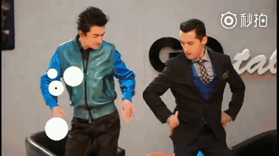 阿美在刷微博的时候,看到一个林更新和胡歌早前一起拍杂志的视频,胡歌搞怪跳舞,林更新在边上笨拙地学动作配合老胡。