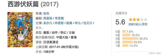 西游贺岁第二部《西游伏妖》,与《悟空传》的评分相差无几,只有5.6。