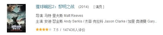 3部《猩球崛起》一路走来水准极佳,第一部豆瓣打分8.0分,二部7.5分