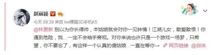 但是万万没想到林更新给赵丽颖和冯绍峰的绯闻点赞,不知道wuli玥公子是调皮呢!还是手滑呢!或是心里苦呢!你们觉得呢?