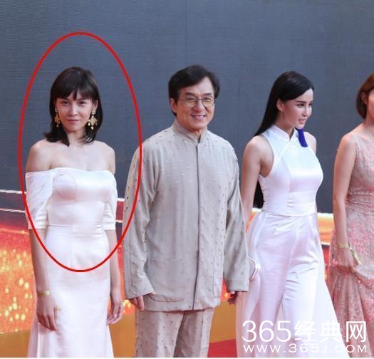 首先是成龙大哥领着龙女郎张蓝心出场,张蓝心穿无肩带低胸,上围呼之欲出,高海拔十分吸睛。不过总感觉衣服要往下掉。