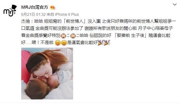 6月21日,周杰伦在金曲奖前,公布了昆凌生下二胎儿子的好消息,表示自己要陪月子,不能去金曲奖现场啦。火影忍者剧情介绍