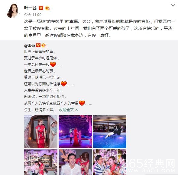 真是没想到,田亮叶一茜结婚都10周年了,都用得上“锡婚”这种有点复古味道的词语。仿佛觉得昨天田亮才带着娃上完《爸爸去哪儿》。