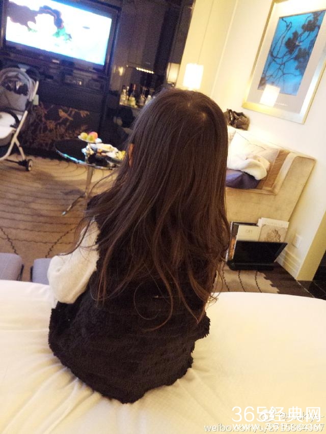从一张背影照可以看出,小甜馨那头美美的卷发已经快要到腰部了~