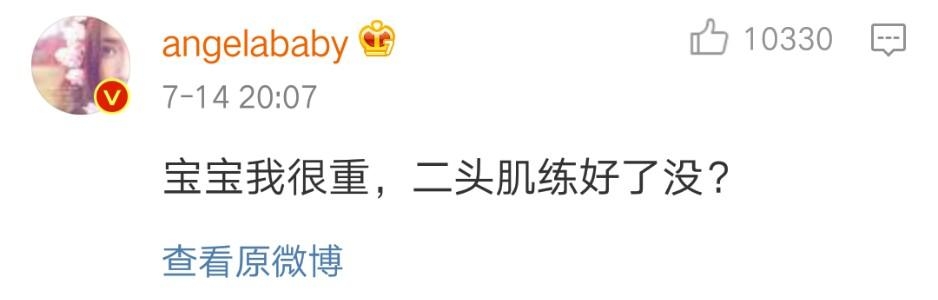 baby随即又在杨幂微博下评论:宝宝我很重,二头肌练好了没?就这样话题成功被转移!