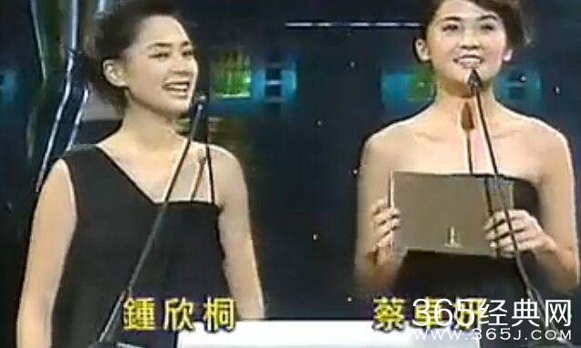 twins上来颁发最佳音响奖。两个人笑的好开心。一上台就笑不停。那时候的阿娇多么快乐,一脸青春洋溢。