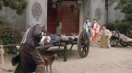 其中最经典的镜头之一是唐伯虎(周星驰饰)想追秋香(巩俐饰),在华府门口卖身葬父,想不到却遇见一个同行(梁荣忠饰)。那书生比唐伯虎专业多了,葬全家,还有旺财,最后一棍子把自己打死了,死前得意洋洋地说了这句台词。他用生命捍卫尊严,彻底打败了唐伯虎。