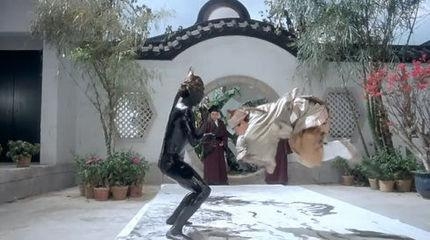 当年,还有这么一个镜头现在也成为经典了,但是当年的巩俐却坚持用了替身。那就是“还我漂漂拳”那场戏,其实这段戏,其他三人都是本人化妆主演。导演原来布置秋香被踢后的模样的是巩俐被打成猪头状,然后周星驰用“还我漂漂拳”帮她还原。