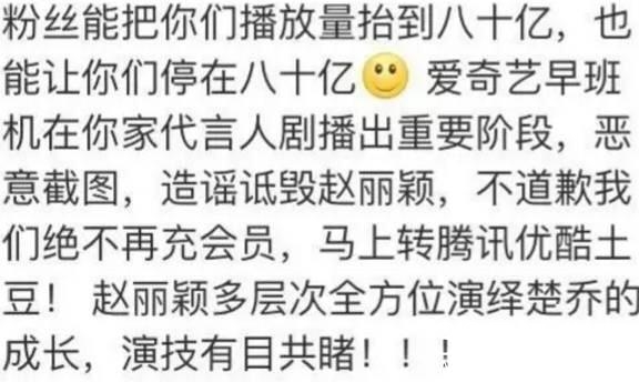 于是,忠心护主的粉丝们纷纷表示不满!还是赵丽颖代言的爱奇艺会员,没想到对自家代言人都如此贬低,粉丝们表示不能忍,坚持让栏目组道歉!