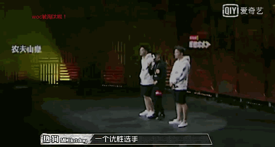 当嘻哈侠要走出场外的时候只有旁边的选手拉住他,阻止他离开